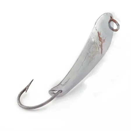 Dit vintage lepelaas met een lengte van 4,5 cm is voorzien van een vernikkelde afwerking en vertoont gebruikssporen die passen bij een conditie van 3 op 5. Met een gewicht van 4,5 g is het metalen lichaam voorzien van stempels van de fabrikant, wat bevestigt dat het om een Barracuda Reflecto #1 gaat, productcode 23565. Dit in de VS gemaakte exemplaar is uitgerust met een enkele haak die via een splitring aan de achterzijde is bevestigd, een robuuste configuratie bedoeld voor werpend vissen of trollen. Er zijn zichtbare oxidatieplekjes aanwezig op de bovenzijde nabij het bevestigingsoog, hoewel de onderliggende metaalglans op de rest van de body goed behouden is gebleven. Aan de voorzijde is een enkele ronde ring gemonteerd voor een stevige lijnbevestiging.