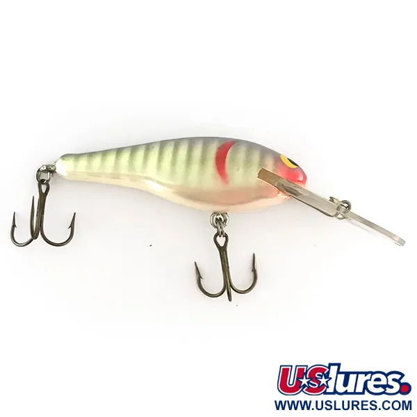 Vervaardigd uit Jelutong-hout, heeft het lichaam van deze Renegade Little Diver een parelmoer afwerking met UV-reactieve eigenschappen. Met een gewicht van 9 g (1/3 oz) en een lengte van 7 cm (2 3/4"), is deze plug ontworpen voor het vissen op soorten zoals kopvoorn en baars op dieptes tot 2 m (6,5 ft). Het visuele patroon bestaat uit donkere verticale strepen over parelmoerachtige flanken, geaccentueerd door een opvallende rode kieuwvlek achter een klassiek geel-zwart oog. Elk exemplaar in de 8475-serie is met de hand afgewerkt, wat zorgt voor een hoogwaardige kwaliteit van het houten frame. Dit specifieke kunstaas verkeert in 5/5 staat, met behoud van de originele glans en vlijmscherpe, ongeschonden dreggen. De heldere duiklip is stevig in de kop geïntegreerd, gepositioneerd om de doeldiepte te bereiken terwijl het natuurlijke drijfvermogen van het hout behouden blijft.