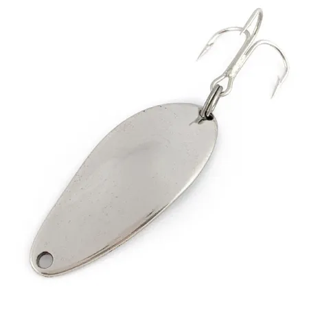 Met zijn schitterende klassieke nikkelafwerking is dit exemplaar een kenmerkend stukje Amerikaanse hengelsportgeschiedenis uit het Seneca Falls-tijdperk. De lepel heeft een lengte van precies 4 cm (1 1/2") en een veelzijdig gewicht van 7 g (1/4 oz), en is op de achterzijde voorzien van het kenmerkende stempel 'LITTLE CLEO WIGL-LURE A SENECA LURE'. Dit specifieke item, met productcode 23409, verkeert in een conditie van 5/5 en heeft een schoon en zeer reflecterend oppervlak. De montage bestaat uit een robuuste dreg, bevestigd met een stevige splitring, typerend voor de betrouwbare constructie van vintage kunstaas uit de VS. Voor verzamelaars bevestigt de scherpte van de letters in de metalen body de goed bewaarde staat en de authentieke afkomst van het merk.