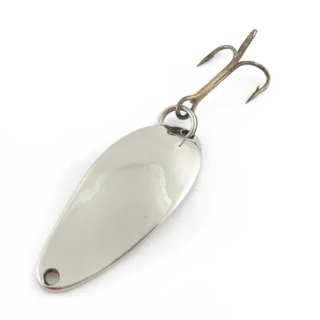 De vernikkelde afwerking van deze 4 cm lepel is nog opvallend helder en reflecteert het licht precies zoals toen deze de Seneca-fabriek in de VS verliet. Het metaal is voorzien van productcode 23550 en toont het karakteristieke Little Cleo-silhouet met de typerende curve aan de achterzijde voor een optimale gewichtsverdeling. Dankzij het gewicht van 7 gram is het een zwaargewicht voor zijn formaat, uitermate geschikt voor het werpen over grote kolken of in diepere stromingen. Een sterke splitring houdt een klassieke bronskleurige dreg op zijn plek, die zijn originele scherpte heeft behouden. Het oppervlak is uitzonderlijk schoon, wat een conditiescore van 5/5 rechtvaardigt voor dit vintage exemplaar. Het ontwerp van Seneca zorgt ervoor dat de lepel diep in de waterkolom blijft bij een gelijkmatige inhaalsnelheid.