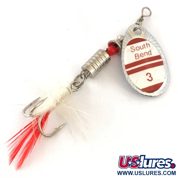 Museumarchief: South Bend 3 Spinner, Nikkel/Rood/Wit, 7g, Gevederde Dreg, #4185