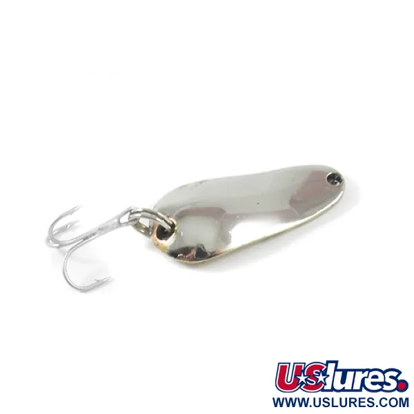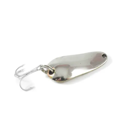 Met een gewicht van 1/4oz (7g) toont deze dubbelzijdige lepel het klassieke vakmanschap van de Spinno-King lijn vervaardigd door Weller. Het metalen lichaam van 1 1/2" (3,5 cm) biedt een scherp visueel contrast, met een spiegelachtige Nikkelen buitenkant en een Gouden binnenkant waar de naam "Spinno-King No 00" strak is ingestempeld. Dit specifieke model, productcode 3012, is een klassiek voorbeeld van Amerikaans hengelsportontwerp uit het tijdperk van de in New Mexico gevestigde Pecos River Tackle Co. De hardware omvat een klassieke zilverkleurige dreg die aan de achterzijde is bevestigd via een duurzame splitring. Met een conditiescore van 4/5 vertoont het exemplaar lichte sporen van opslag, maar behoudt het een helder, schoon uiterlijk op zowel de nikkelen als gouden oppervlakken. Het voorste oogje is vrij voor montage, typerend voor lepels ontworpen voor veelzijdige werptoepassingen.