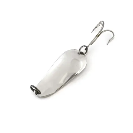 Met een gewicht van 1/4oz (7g) heeft deze klassieke vernikkelde lepel een heldere, reflecterende afwerking die kenmerkend is voor vintage Amerikaans materiaal. Op de bolle zijde staat duidelijk "Spinno-King No. 00" gestanst, wat het vakmanschap van het merk Weller vertegenwoordigt, dat historische banden heeft met de Pecos River Tackle Co. Het lichaam van 1 1/2" (3.5cm) heeft een eenvoudig druppelprofiel, ontworpen voor werpen of trollen in diverse zoetwateromgevingen. De hardware bestaat uit splitringen in originele stijl en een scherpe dreg, waarbij alles in een conditie van 5/5 verkeert. Dit exemplaar, met productcode 8868, toont de duurzame vernikkeling die wordt gebruikt om vissoorten te lokken via lichtreflectie.