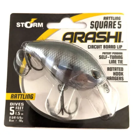 Met een gewicht van 18 g (2/3 oz) biedt de Bluegill-afwerking op deze crankbait een realistisch aasvisprofiel dat geschikt is voor verschillende wateromstandigheden. De Storm Arashi Rattling Square 5, aangeduid met productcode 11332, is ontworpen om tot een diepte van 1,5 m (5 ft) te duiken met behulp van zijn dunne, duurzame circuitboard duiklip. Een opvallend technisch kenmerk is de zelf-centrerende lijnbevestiging (self-tuning line tie), een vrij bewegend ontwerp dat bedoeld is om een rechte koers te behouden tijdens het binnenvissen. Met een lengte van 6 cm (2 1/4") is het kunstaas uitgerust met gedraaide haakogen die de VMC-haken dichter tegen het lichaam houden om vastlopers te verminderen. Dit specifieke exemplaar is ongebruikt in de originele verpakking, wat een conditiescore van 6 rechtvaardigt. De interne ratelkamer zorgt voor een duidelijke akoestische handtekening, terwijl de productie in Indonesië plaatsvond. De zware hardware en het square-lip ontwerp zijn op maat gemaakt voor het afketsen op obstakels zoals hout of rotsen.