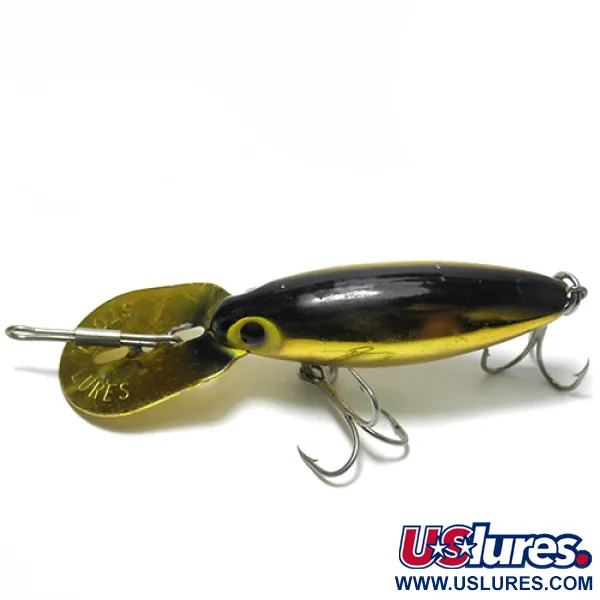 Een goudkleurige metalen plating geeft deze vintage vondst van 5 cm een tijdloze uitstraling, vooral in combinatie met de contrastrijke zwarte streep op de rug. Deze Storm Hot'N Tot, herkenbaar aan productcode 0104, staat symbool voor het vakmanschap van de Thin Fin-serie die oorspronkelijk in de VS werd geproduceerd. Met een gewicht van 6,5 g is de plug uitgerust met een kenmerkende metalen zwemlip, ontworpen voor stabiliteit tijdens het trollen of driften in diverse stromingen. De gele ogen met opvallende zwarte pupillen vormen een duidelijk middelpunt tegen het reflecterende gouden lichaam. Zowel de dreg als de bevestiging van de lip zijn vervaardigd van duurzaam materiaal, passend bij de 4/5 conditie van dit exemplaar. Waar veel latere modellen overgingen op plastic onderdelen, blijft de geïntegreerde metalen lip op dit model een favoriet voor verzamelaars die waarde hechten aan traditionele bouw en specifieke loopkenmerken.