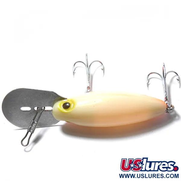 De oranje-gele kleurstelling van deze Storm Hot'N'Tot Thin Fin maakt het een zeer zichtbare keuze voor diverse wateromstandigheden. Met een gewicht van 12 g (2/5 oz) en een lengte van 9 cm (3 1/2"), is dit drijvende kunstaas ontworpen om dieptes van 1,5–4 m (5–13 ft) te bereiken. Dit model, met productcode 0042, is voorzien van de iconische oversized metalen lip met geïntegreerde snap, een configuratie die synoniem staat voor diepduikende prestaties in de vintage Storm-lijn uit de VS. Dit exemplaar heeft een conditiescore van 5/5 en behoudt zijn originele afwerking en scherpe dreggen zonder gebruikssporen. Het is specifiek bedoeld voor het vissen op glasoogbaars, baars en snoek, of het nu wordt gebruikt voor driften, werpen of trollen. De overgang van de bleekgeel-crèmekleurige bovenkant naar de felle oranje buik is duidelijk, aangevuld met een geelomrand oog dat dient als een gericht mikpunt voor roofvissen.