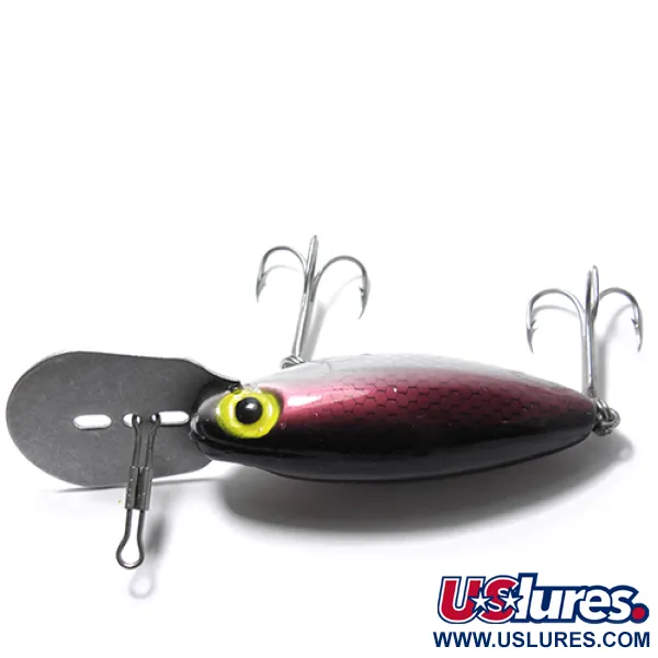 Duikdieptes tussen 1,5 en 4 m (5 - 13 ft) worden bereikt via de opvallende metalen duiklip op dit 9 cm (3 1/2") model. De Storm Hot'N'Tot Thin Fin, met productcode 0043, heeft een klassiek Dark Red / Steel / Black kleurenschema, met een dieprode metallic rug die overgaat in zilverkleurige flanken met een honingraat schubbenpatroon. Een gewicht van 12 g (2/5 oz) biedt de nodige massa voor effectief werpen, trollen of driften op snoekbaars, baars en snoek. De opvallende gele ogen met zwarte pupillen zijn voorwaarts geplaatst voor een duidelijk aanvalspunt. Deze plug verkeert in een 5/5 conditie, waarbij de originele afwerking en hardware in uitstekende staat zijn gebleven. Twee dreggen zijn bevestigd met standaard splitringen voor direct gebruik of verzameling.