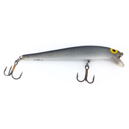 Versierd met een klassiek honingraat schubbenpatroon op de rug, toont deze 9 cm (3 1/2") Storm Thunder Stick het vakmanschap van de vintage Amerikaanse productie. De Silver kleurstelling gaat over in een witte buik, geaccentueerd door grote gele ogen die een opvallend contrast vormen voor rovers zoals snoek, snoekbaars en forel. Dit specifieke exemplaar draagt productcode 10739 en verkeert in uitstekende staat, beoordeeld met 5/5. Met een gewicht van 7 g (1/4 oz) is hij perfect uitgebalanceerd voor werptechnieken en voorzien van een transparante duiklip die is ingesteld voor dieptes van 0,3 - 1,5 m (1 - 5 ft). De hardware bestaat uit twee originele dreggen die zijn bevestigd met robuuste splitringen, waardoor het slanke minnow-profiel behouden blijft. Dit drijvende kunstaas vertegenwoordigt een periode waarin Storm zich richte op duurzame, eenvoudige ontwerpen voor een effectieve presentatie in ondiep water.