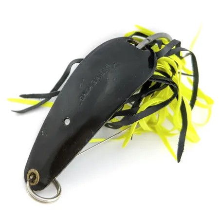 Met een gewicht van 1/2 oz (14 g) is de Strike King Timber King een klassieke wierloze lepel die getuigt van de Amerikaanse tackle-historie. Met een lengte van 2 1/4" (5,5 cm) is dit specifieke kunstaas (productcode 17998) voorzien van een diepzwarte afwerking op het metalen lichaam, geaccentueerd door een contrasterende zwart-gele rubberen skirt. Dit model werd oorspronkelijk geïntroduceerd in 1979 en was ontworpen voor het vissen op kapitale snoek en baars tussen de zwaarste obstakels, een tijd waarin het merk zich richtte op gespecialiseerd materiaal voor dichte begroeiing. De constructie bevat een robuuste enkele haak, beschermd door geïntegreerde metalen weedguards, wat ervoor zorgt dat hij zonder haken door dichte vegetatie kan manoeuvreren. Dit exemplaar verkeert in een 5/5 staat, met een schoon oppervlak op zowel de lepel als de robuuste splitring. Deze zeldzaamheid van Amerikaanse makelij, die al lang uit productie is, vertegenwoordigt een functioneel stukje hengelsporterfgoed uit de late jaren 70.