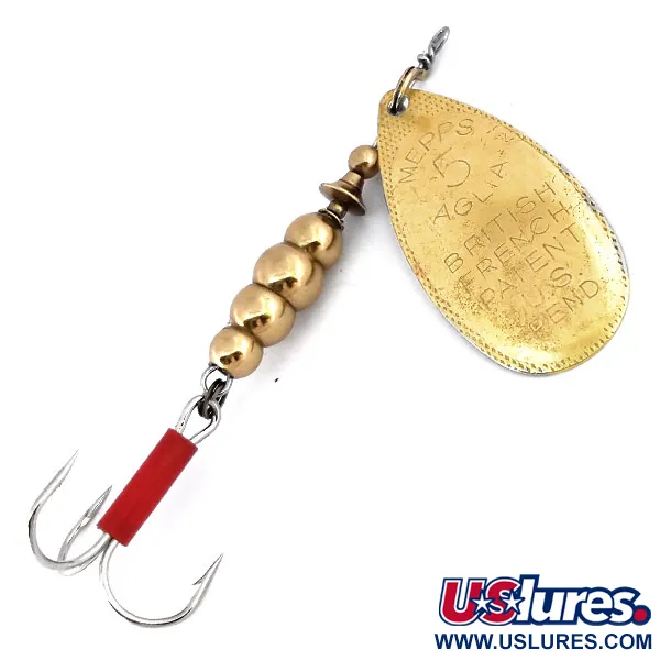Museumarchief: Mepps Aglia 5 Spinner, Messing, 14g, rode huls, #10601