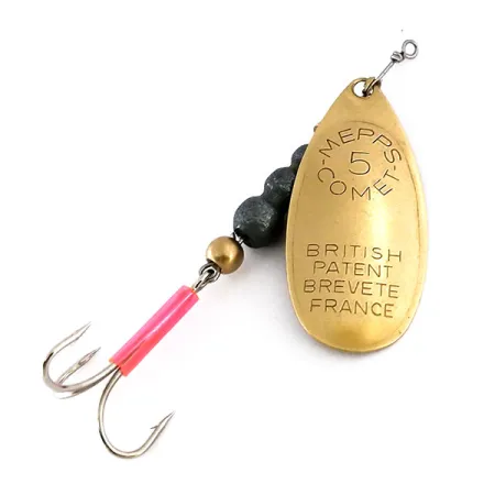 Museumarchief: Vintage Mepps Comet 5 Spinner, Messing, 8cm, Roze attractor, #10199