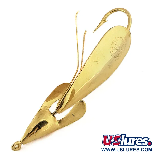 Dit glanzende gouden exemplaar is een perfect voorbeeld van de slimme techniek die Johnnie O'Neil vanaf 1957 vanuit Akron, Ohio, in de hengelsport introduceerde. Met een lengte van 7 cm (2 3/4") en een gewicht van 14 g (1/2 oz) is de Weed Wing 3 een iconisch onderdeel van de Amerikaanse tackle-geschiedenis uit het midden van de vorige eeuw. Het gestanste metalen lichaam is voorzien van de kenmerkende gravure die hoort bij het patent van O'Neil uit 1962, een ontwerp dat medio jaren zestig werd verkocht aan Harrison Industries. Om door dichte begroeiing te vissen, is het kunstaas uitgerust met drie fijne draadbeschermers die de grote, geïntegreerde enkele haak afschermen. Dit exemplaar met productcode 11450 verkeert in uitstekende staat (score 5/5), waarbij de reflecterende oppervlakken en het metaalwerk er zeer goed uitzien. De historie markeert de overgang van dit model van een kleinschalige uitvinding in Ohio naar een standaardmodel dat later door Panther Martin werd geproduceerd.