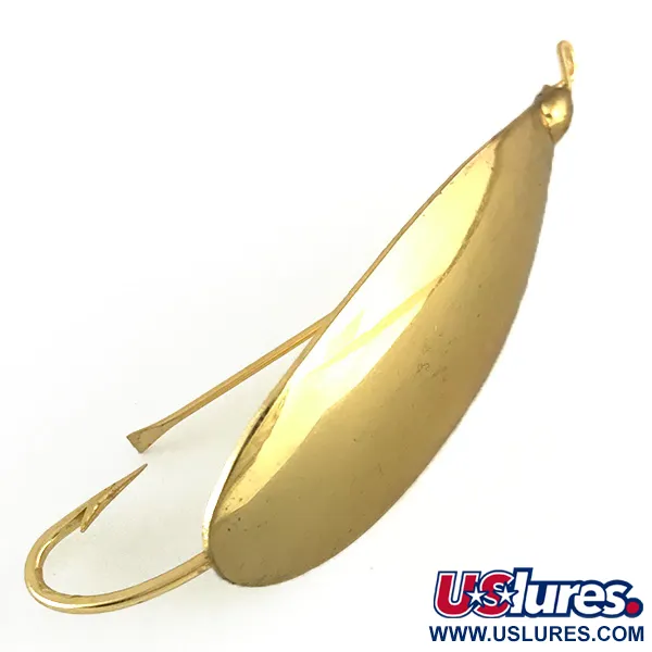 Glanzend met een klassieke gouden afwerking, vertegenwoordigt dit exemplaar het legendarische wiervrije ontwerp dat Louis Johnson al in 1920 perfectioneerde. Met een gewicht van 6 g (3/16 oz) is de specifieke koper/zink legering van de lepel dikker in het midden, wat helpt om de juiste oriëntatie te behouden tijdens het binnenvissen. Deze Weedless Johnson Silver Minnow, herkenbaar aan productcode 6698, is 4,5 cm (1 3/4") lang en voorzien van de iconische geïntegreerde haak met wierbeschermer voor het vissen in dichte vegetatie. Met een score van 5/5 toont het kunstaas de hoogwaardige plating die typerend is voor de oude Amerikaanse voorraad voordat de productie naar het buitenland verhuisde. Het gouden oppervlak is ontworpen om neerwaartse en zijwaartse flitsen te produceren terwijl het lichaam in een hoek van 270 graden kantelt. Omdat de schommelende beweging constant blijft, zelfs bij het toevoegen van een trailer, combineren veel verzamelaars en sportvissers deze nog steeds met pork rind om het uiterlijk van een gewonde aasvis na te bootsen. De enkele haak is zo geplaatst dat deze naar boven blijft wijzen, waardoor vastlopers worden voorkomen terwijl hij vrij blijft voor een aanbeet van onderaf.