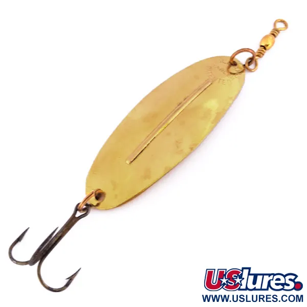 Deze klassieke Canadese lepel weegt 18g (2/3oz) en vertoont de kenmerkende stabilisatierand die de Williams Wabler al decennia tot een vaste waarde maakt voor snoek- en snoekbaarsvissers. Met een lengte van 8,2 cm (3 1/4") is de lepel voorzien van een glanzende gouden afwerking voor hoge zichtbaarheid. Dit specifieke model, met productcode 10209, is voorzien van het merkteken nabij het bovenste oogje. Het structurele ontwerp behoudt een stabiele baan bij zowel snel als langzaam binnenvissen, dankzij de opvallende verhoogde middenlijn. De lepel is uitgerust met de originele bronzen dreg en een robuuste tonwartel. Met een conditiescore van 5/5 is de plating schoon en het beslag volledig intact.