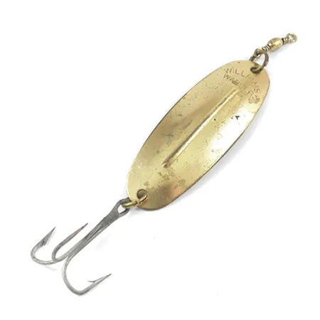 Een geïntegreerde longitudinale rib kenmerkt het 6,7 cm (2 3/4") lange lichaam van deze gouden Williams Wabler, wat zorgt voor stabiliteit tijdens het gelijkmatig binnendraaien. Deze in Canada gemaakte klassieker, aangeduid met productcode 1987, weegt 14 g (1/2 oz), waardoor het een veelzijdige keuze is voor zowel werpen als trollen op roofvissen zoals snoek of meerforel. Het bovenste gedeelte van het kunstaas is duidelijk gestempeld met de naam Williams Wabler, een kenmerk van een bedrijf dat bekend staat om het gebruik van echt edelmetaal in hun afwerkingen. Uitgerust met een vintage-stijl dreg en een messing wartel, blijft de hardware functioneel en robuust. Dit exemplaar verkeert in een nette 4/5 conditie, met een helder, reflecterend oppervlak dat de duurzaamheid van de originele gouden afwerking aantoont. Dit kunstaas is ontworpen om effectief te zijn bij verschillende snelheden, waarbij de centrale rib fungeert als stabilisator om spinnen onder spanning te voorkomen.