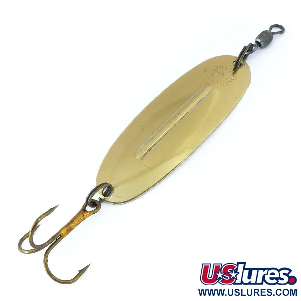 Een gestempelde lengterib loopt door het midden van deze 5,2 cm (2") lepel en dient als het kenmerkende stabiliserende kenmerk van het Williams-ontwerp. Met een gewicht van 7 g (1/4 oz) is deze goudkleurige Wabler W40 een klassiek voorbeeld van Canadees vakmanschap van Williams (Productcode 10962). Dit specifieke model toont de iconische rug die voor het eerst werd ontwikkeld in 1914 in Buffalo, hoewel de productie in 1978 in Canada werd gecentraliseerd. Waar veel Wabler-lepels beroemd zijn om hun verzilvering, zorgt deze goudkleurige variant voor een opvallende metaalglans die bedoeld is om snoek en snoekbaars te verleiden tijdens het werpen of trollen. De hardware is robuust, met een stevig bevestigde dreg aan de staart en een soepel draaiende wartel aan de kop om kinken in de lijn te voorkomen. Een scherpe stempel van de fabrikant is zichtbaar bij het bovenste gat, wat het erfgoed weerspiegelt van een ontwerp dat al sinds de jaren 1920 onmisbaar is in elke tacklebox.
