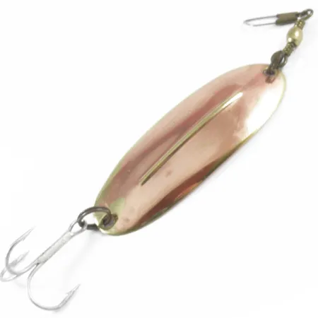 De koperen afwerking vangt het licht prachtig op deze in Canada gemaakte lepel van 14 g. De Wabler W50 (productcode 3599) is duidelijk gestempeld met de naam Williams en is voorzien van de kenmerkende lengterichel die stabiliteit biedt tijdens zowel snelle als langzame inhaalslagen. Met een lengte van 6,7 cm vertoont dit exemplaar een schoon, goed bewaard oppervlak dat typisch is voor een 4/5 conditiebeoordeling. De hardware omvat een stevige zilverkleurige dreg en een wartel aan de bovenkant die klaar is voor de lijn. Ontworpen voor het vissen op snoek en snoekbaars; de rib over het midden voorkomt dat het kunstaas gaat spinnen en zorgt in plaats daarvan voor een stabiele koers door het water.