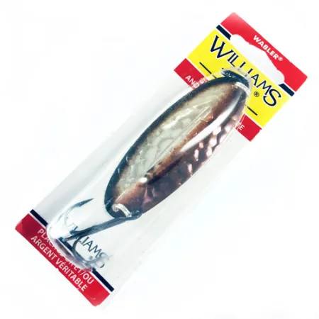 Een gewicht van 3/4oz (21g) geeft deze verzilverde lepel de nodige massa om diepere waterlagen te bereiken waar snoek en snoekbaars zich vaak ophouden. Het kleurenschema Zilver/Bruin, specifiek aangeduid als het 'Ruffe'-patroon op de verpakking, toont de hoogwaardige verzilvering die Williams al meer dan een eeuw toepast. Met een lengte van 3 1/4" (8,2cm) is dit W60-model gebouwd met een opvallende stabiliserende rug in het midden om rotatie van het kunstaas tijdens het binnenvissen te voorkomen. Gekoppeld aan productcode 1731 (W60RF), is dit exemplaar ongebruikt en zit het in de originele kartonnen en plastic verpakking. De achterkant benadrukt het Canadese erfgoed en het gebruik van echt edelmetaal voor een reflectie die levende aasvis imiteert. Uitgerust met een scherpe dreg, geschikt voor zowel werpen als trollen.
