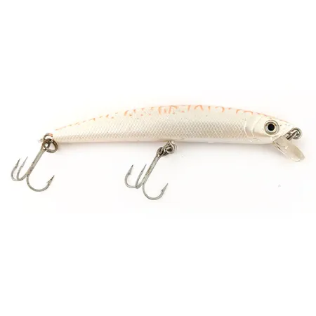 Een getextureerde parelmoer afwerking geeft deze Yo-Zuri Monnow (S) een subtiele glans, aangevuld met een opvallend oranje skeletpatroon op de rug. Met een gewicht van 10 g (1/3 oz) is deze zinkende minnow uit Japan gebouwd voor veelzijdige werp- en twitch-technieken. Het lichaam van 9 cm (3 1/2"), herkenbaar aan productcode 13150, heeft een korte, heldere duiklip ontworpen voor ondiep water voordat zijn zinkende eigenschappen verschillende dieptes bereiken. Verzamelaars zullen de realistische zilveren ogen en originele zilverkleurige dregogen waarderen. Dit exemplaar is ongebruikt en verkeert in fabriekstaat. Het is een betrouwbare keuze voor het vissen op baars en snoek, en toont de precisieproductie waar Yo-Zuri/Duel om bekend staat.